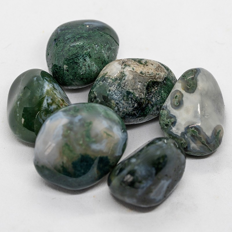 L'Agate mousse, est une Calcédoine. Elle donne de l'énergie, confiance en soi, et renforce le courage.